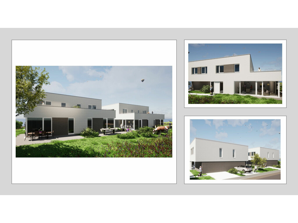 Maison de style épuré, caractérisé par des baies vitrées offrant un paysage pittoresque.
